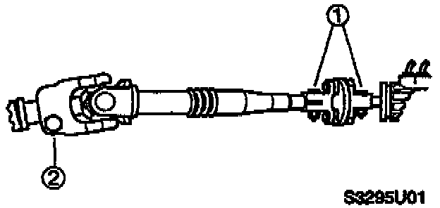 Replacement of Hardy Disc assembly.Unlock steering column lock. Remove bolts (1) from Hardy disc assembly, and remove Hardy disc assembly.