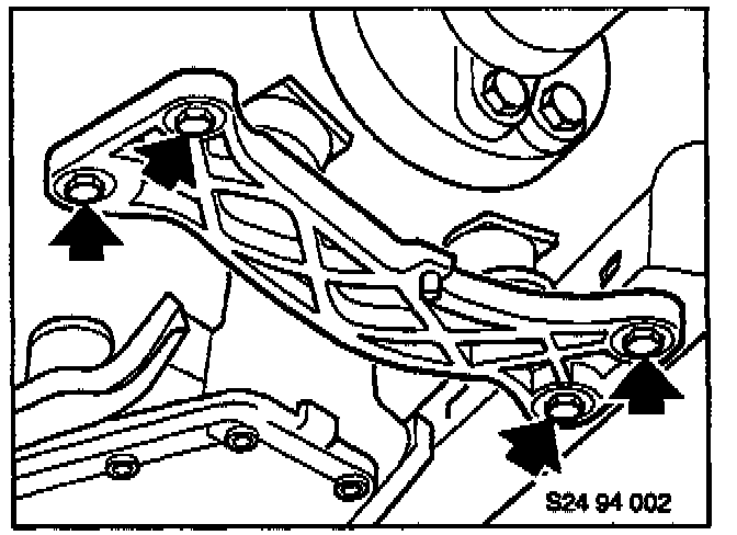 Loosen and lower transmission mount bracket.