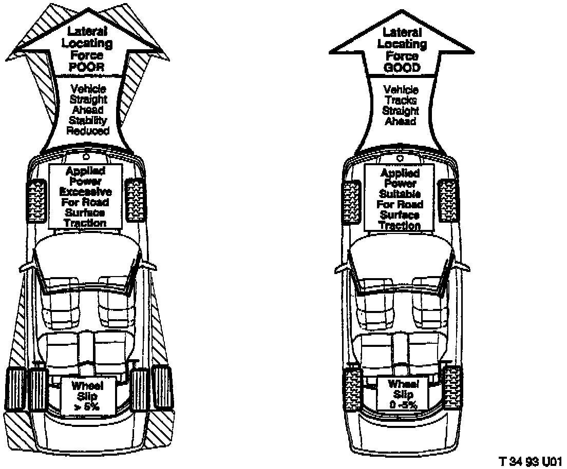 The programming of the control module will then activate ASC+T regulation using one of the following principles, based on various combinations of vehicle speed and traction conditions: