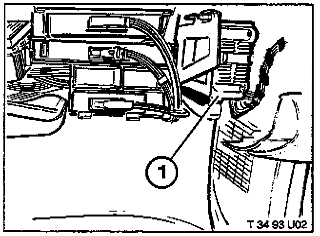 The control module (1) is mounted behind the glove box in the passenger compartment.