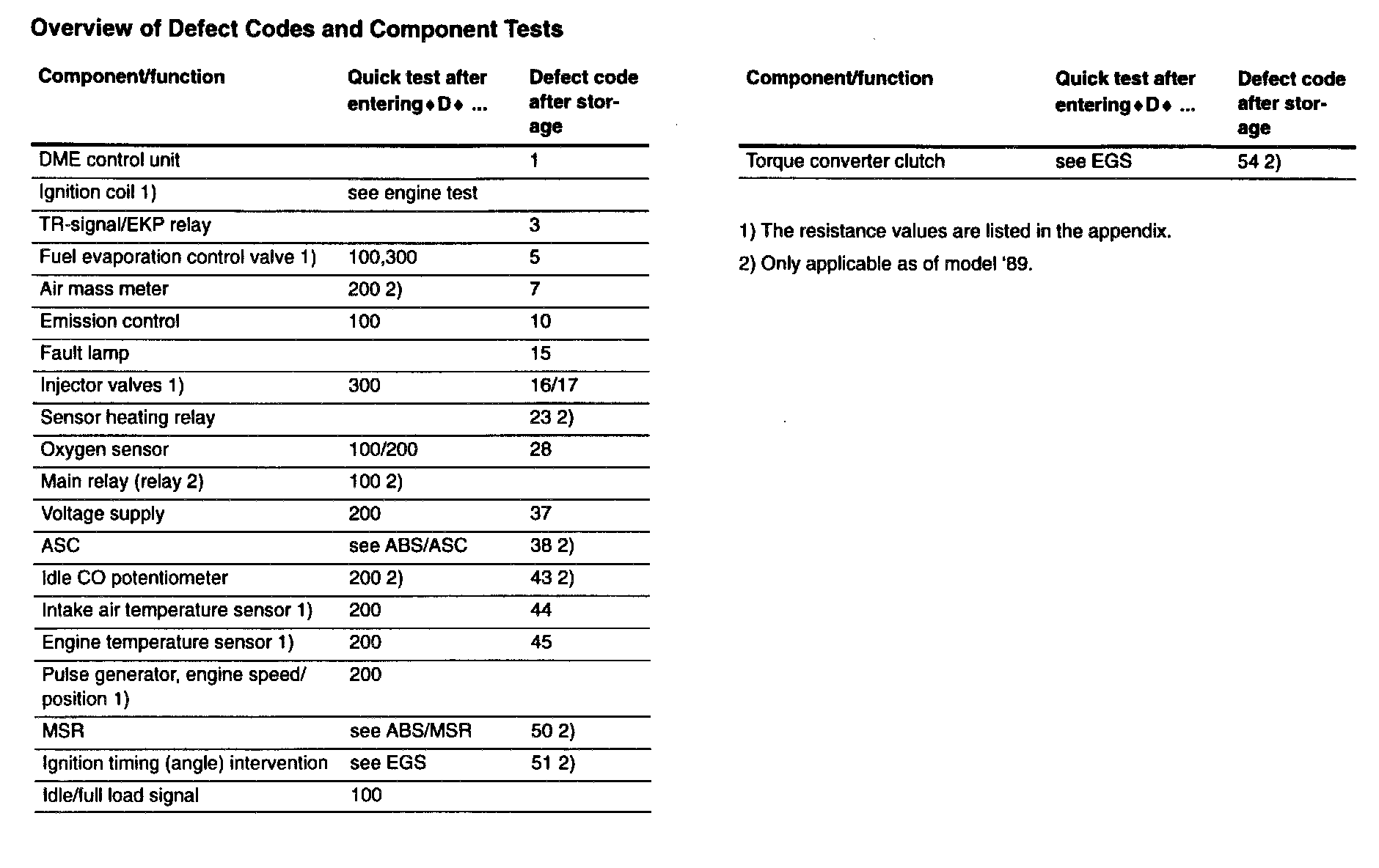 Overview of Defect Codes and Component Tests: