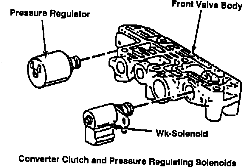 Located in the front valve body, this solenoid regulates throttle pressure by altering the force behind a spool valve by means of a variable electromagnetic force. The current to the force motor is varied between 0-1 amp (0 amp giving the highest throttle pressure signal).