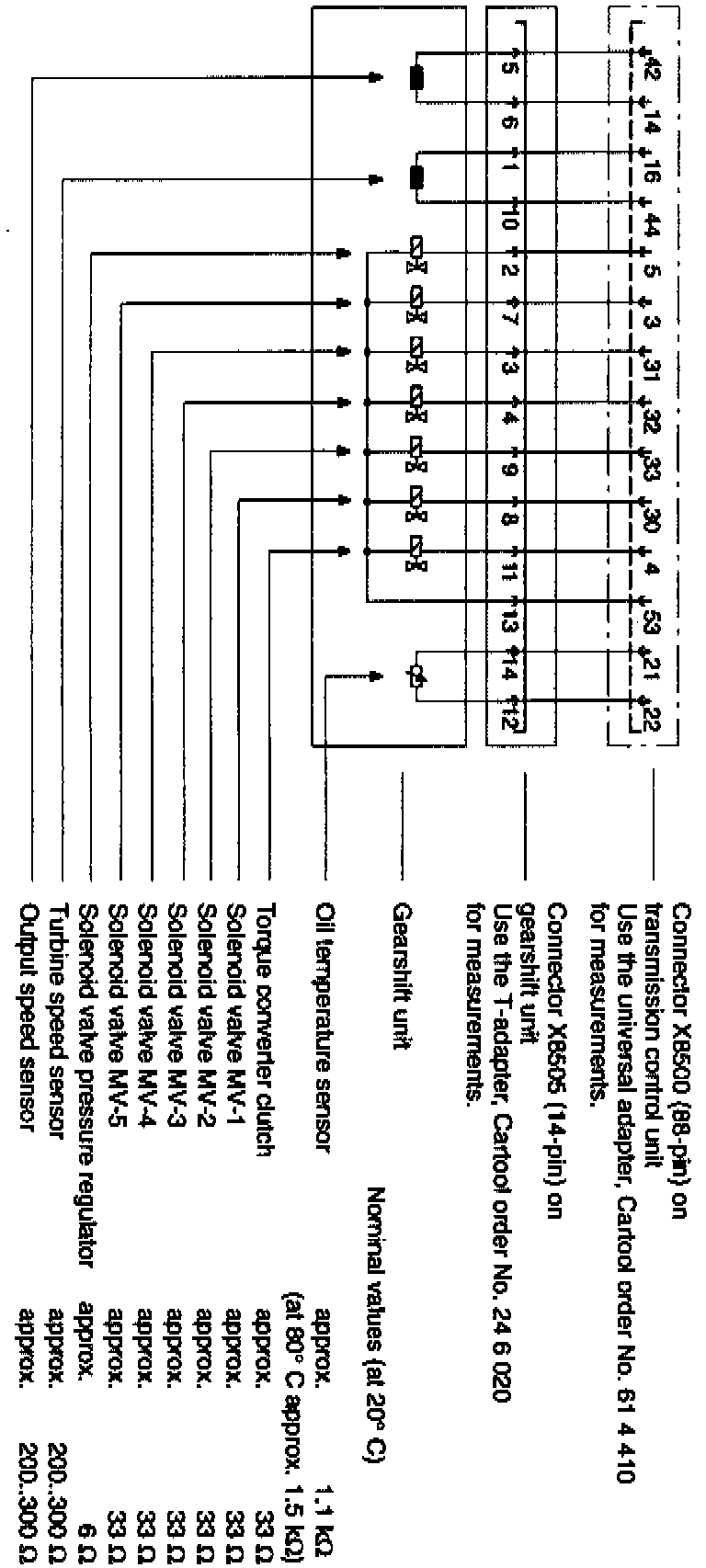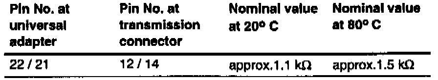If values deviate, check wire and plug-and-socket connection from control unit to transmission and repair if necessary. If OK: Replace wire harness in transmission control unit.