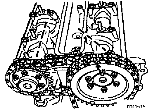If all of the above conditions are met, the camshaft timing is correct. If necessary, adjust camshafts by loosening camshaft sprocket bolts and adjusting.