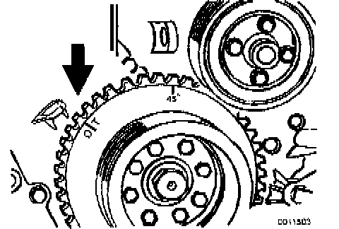 - Camshaft lobes at cylinder no.1 face in.