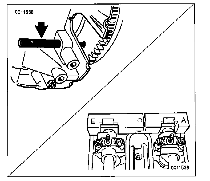 - Lock camshafts at TDC using BMW special tools 11 2 442/446 (cyl. 5-8) and tools 11 2 445/441 (cyl. 1-4). Install camshaft tools with letter A on exhaust side and letter E on intake side.