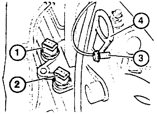 - Unscrew mutual ground wire of ignition coils (3) close to rear engine suspension eye (4).