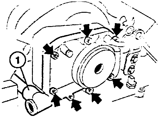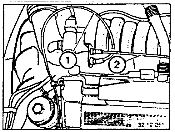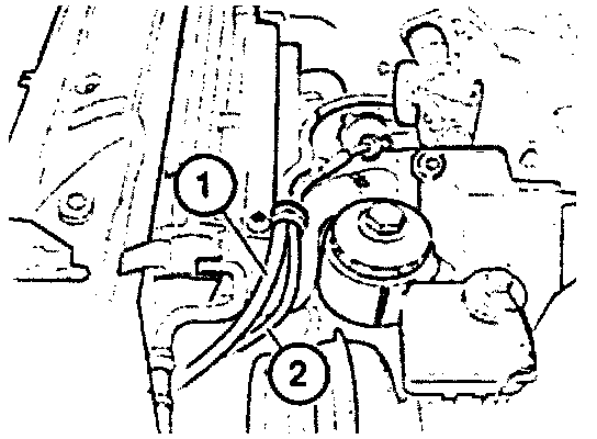 - Pull hose (1) off of end cover (2) on back of manifold.