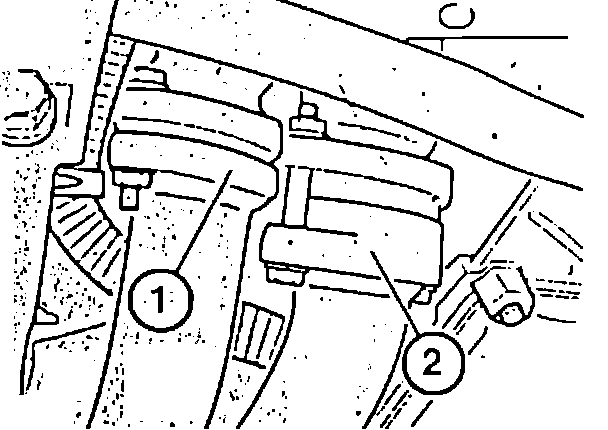 8. Tighten flange with spherical seal (1), left and right outer pipes to 18 ft. lbs.