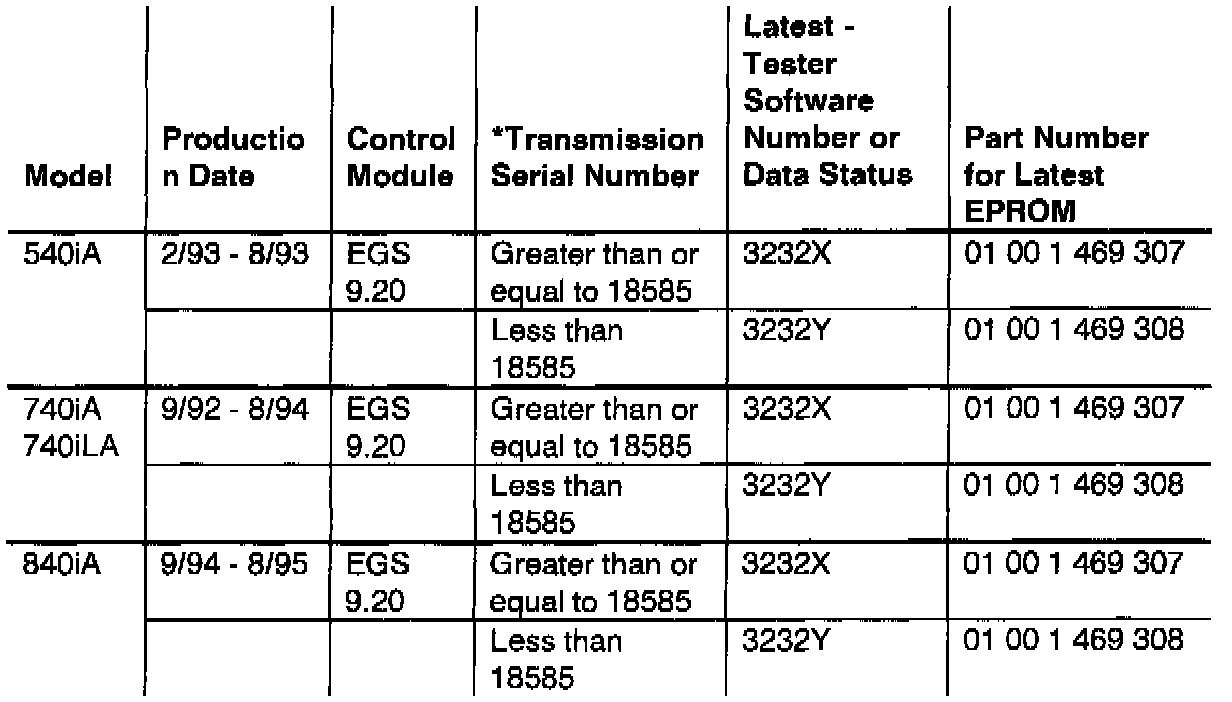 1. Install the latest EGS transmission EPROM if the tester software number or the data status does not reflect what is shown in the table. Please refer to S.I. 24 O5 95 (4294) for instructions on removing and installing the EPROM.