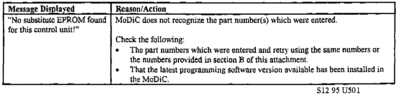 4) If the following statement is displayed on the MoDiC screen after a replacement EPROM has been installed and programming was selected, follow the steps indicated: