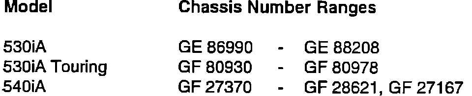 The Chassis Number Ranges listed are only for informational purposes and are not to be considered as the only deciding factor. The affected vehicles are limited to vehicles within these ranges, but not all of these vehicles are affected by the Service Action. The final decision factor is the DCS inquiry.