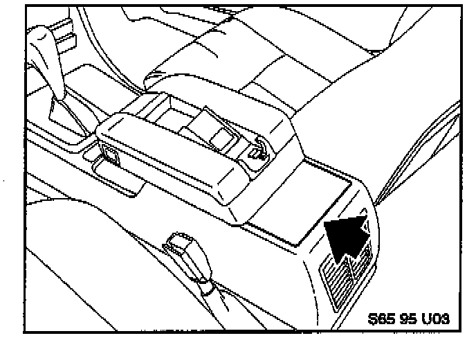 2. Turn off the phone and the ignition. Slide the armrest as far forward as it will go. Remove the trim plate below and behind the armrest as shown. Be careful not to damage the leather.