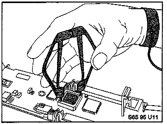 15. Locate the EPROM (near the center of the board, and the only socketed IC on the board). Remove it using the IC removal tool (P/N 88 88 0 000 045) as shown. This tool was sent to you under the Automatic Tool Shipment Program. Refer to S.I. 04 17 95 (4257).