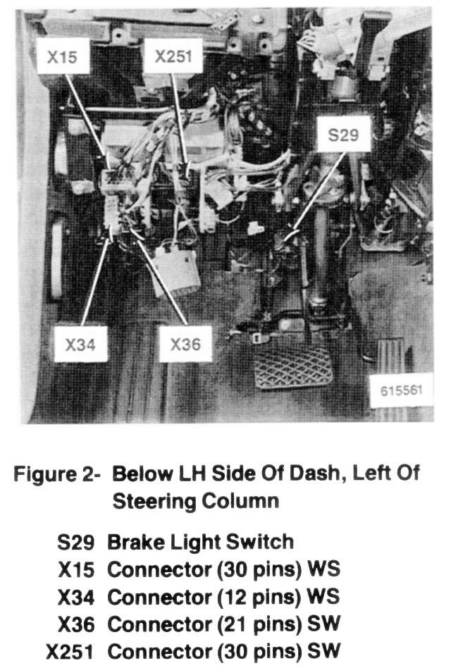 Component/Connector Location Views: Below LH Side Of Dash, Left Of Steering Column: