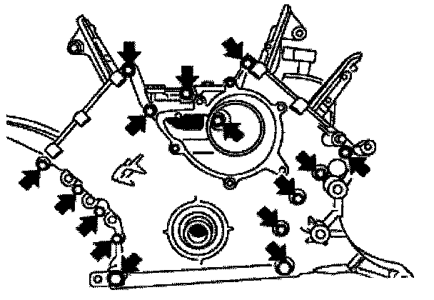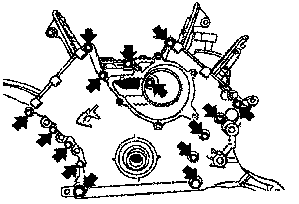 Install timing case cover, insert all screws and initially tighten to approx. 5 Nm.