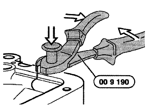 Secure engine to special tool 00 1 450. These tasks are described in the work step, Removing and installing left cylinder head.