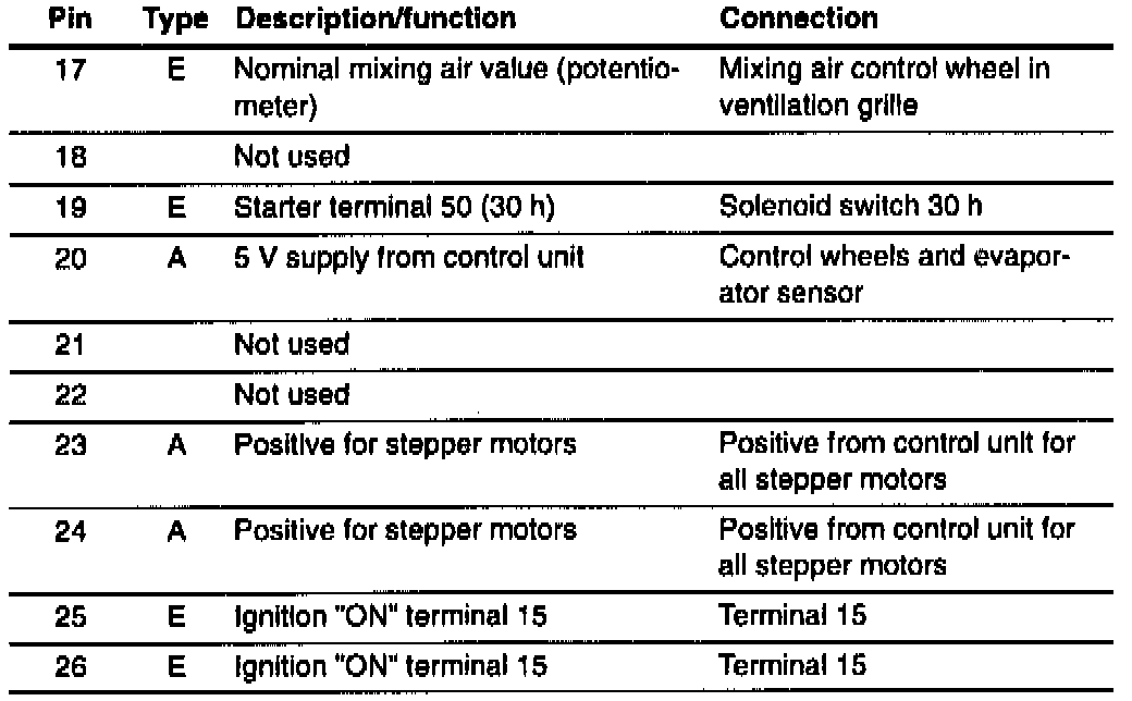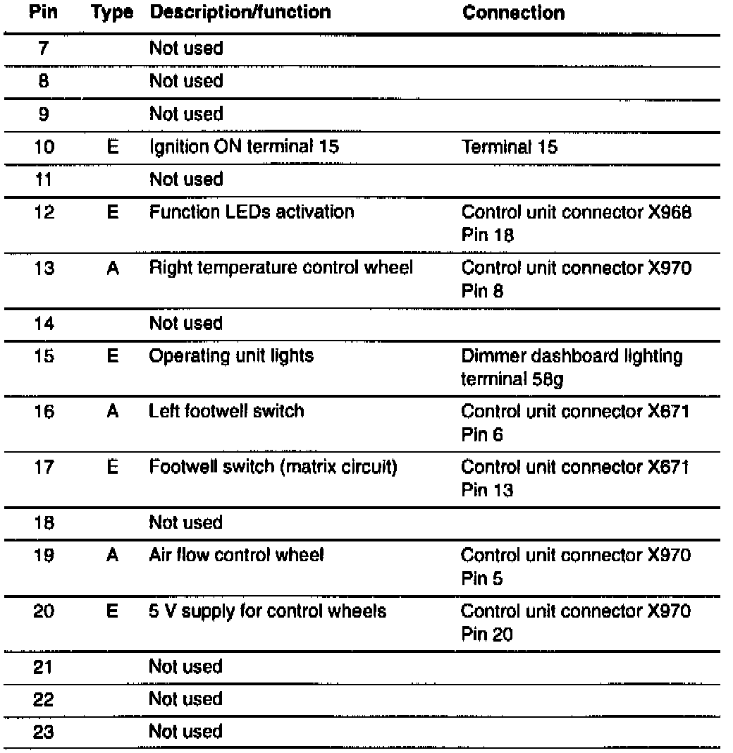 Pin Assignments @ FKH Control Unit Connector X970-Part 2