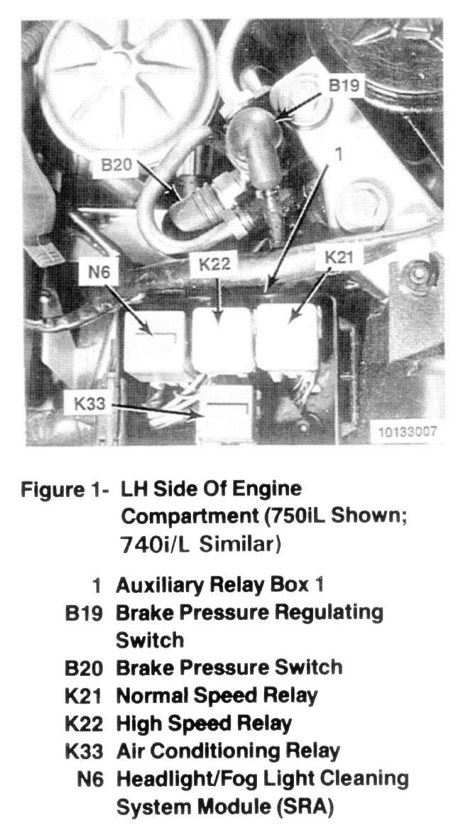 Component/Connector Location Views: LH Side Of Engine Compartment (750iL Shown: 740i/L Similar):
