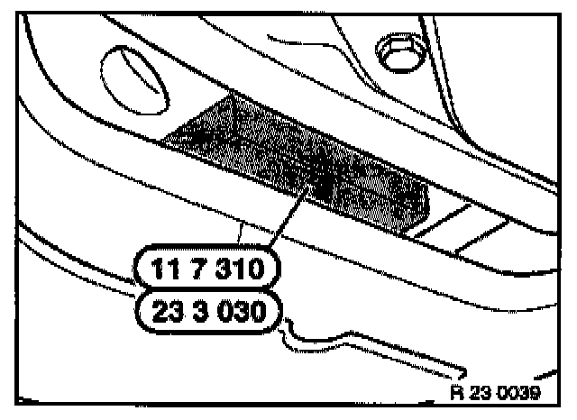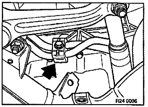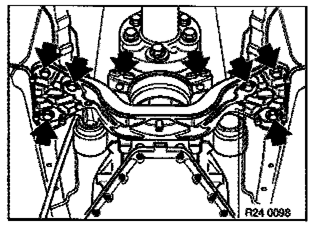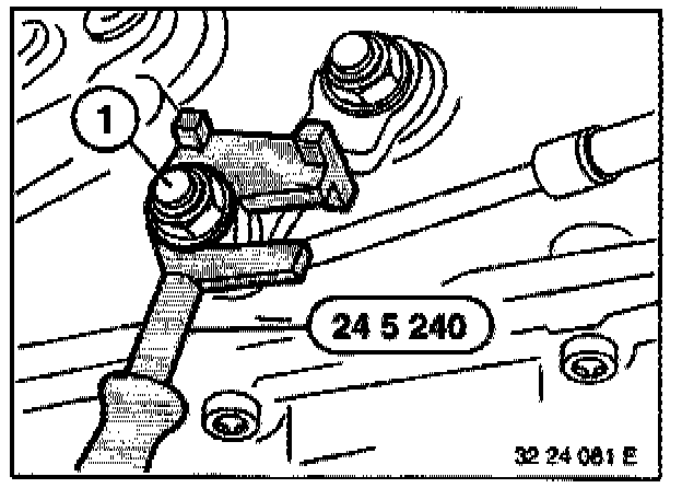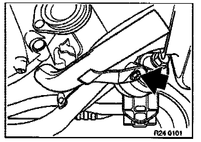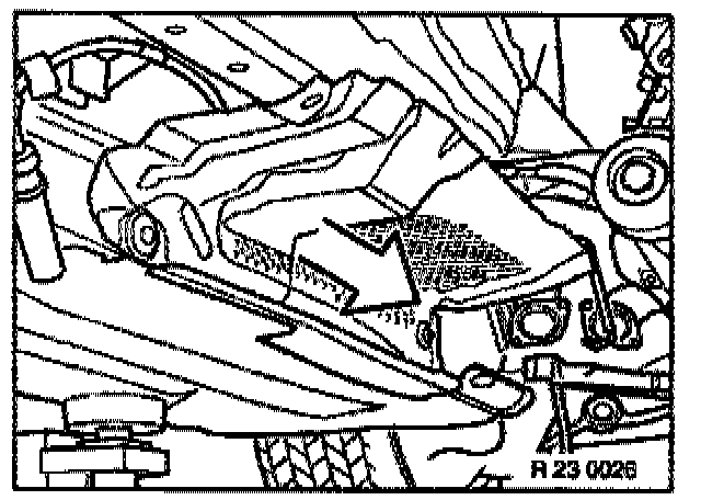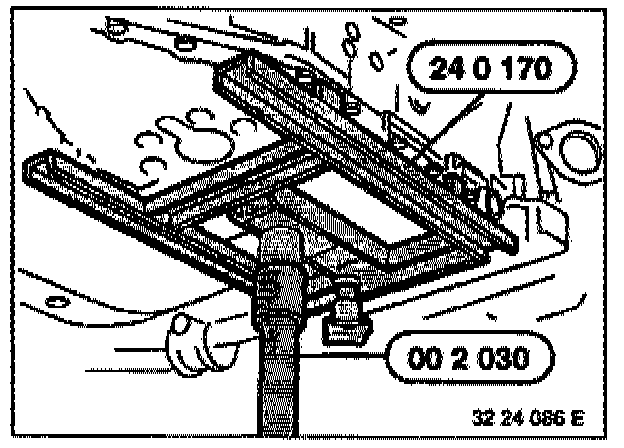 - Fit special tool 23 3 030 (M60/M62 engines) or 11 7 310 (M73 engine) between engine oil pan and front axle support.