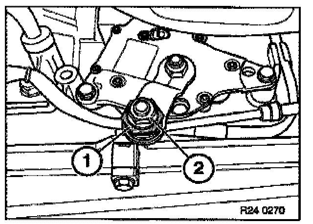 - Brace clamping bush (1) and loosen nut (2).