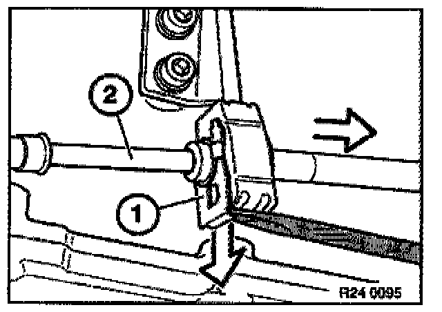 - Lift out retaining plate (1) with a screwdriver. Remove cable (2).