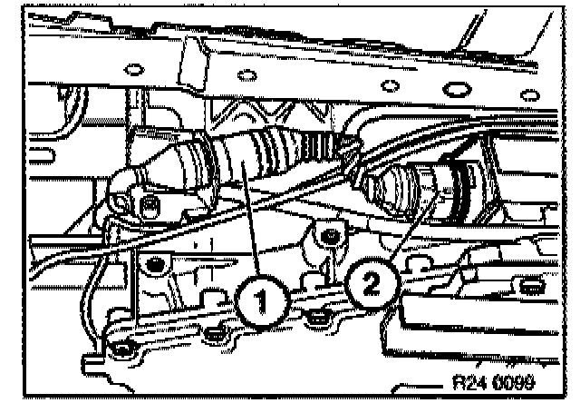 - Unlock plug connection (1 & 2) and disconnect. Unclip cable on transmission case.