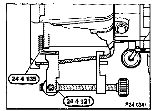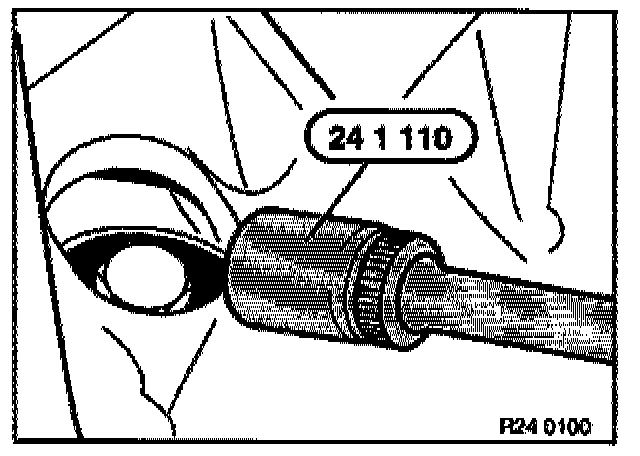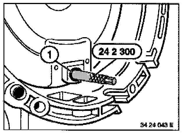 - Screw special tool 24 2 300 into the threaded bore (1).