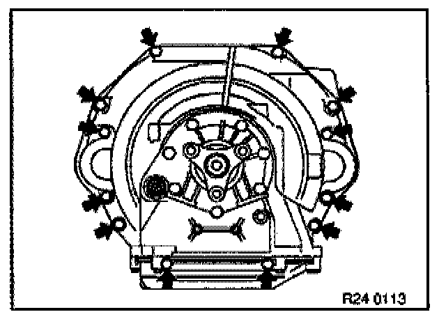 - Unfasten 4 retaining screws for torque converter with special tool 24 1 110.