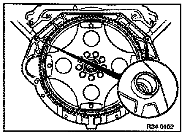 - If applicable, twist torque converter until bore with special tool 24 2 300 points downwards.