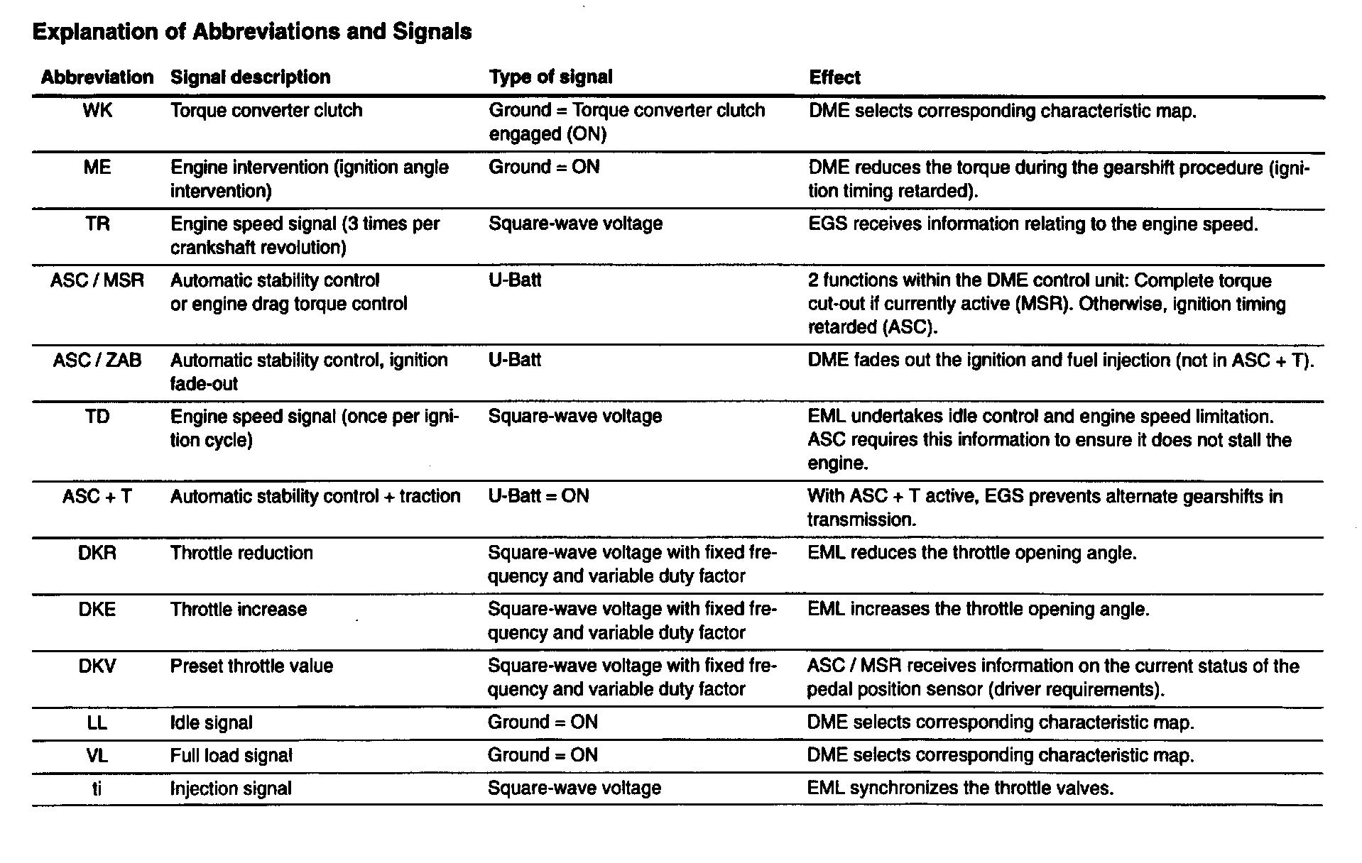 Explanation of Abbreviations and Signals: