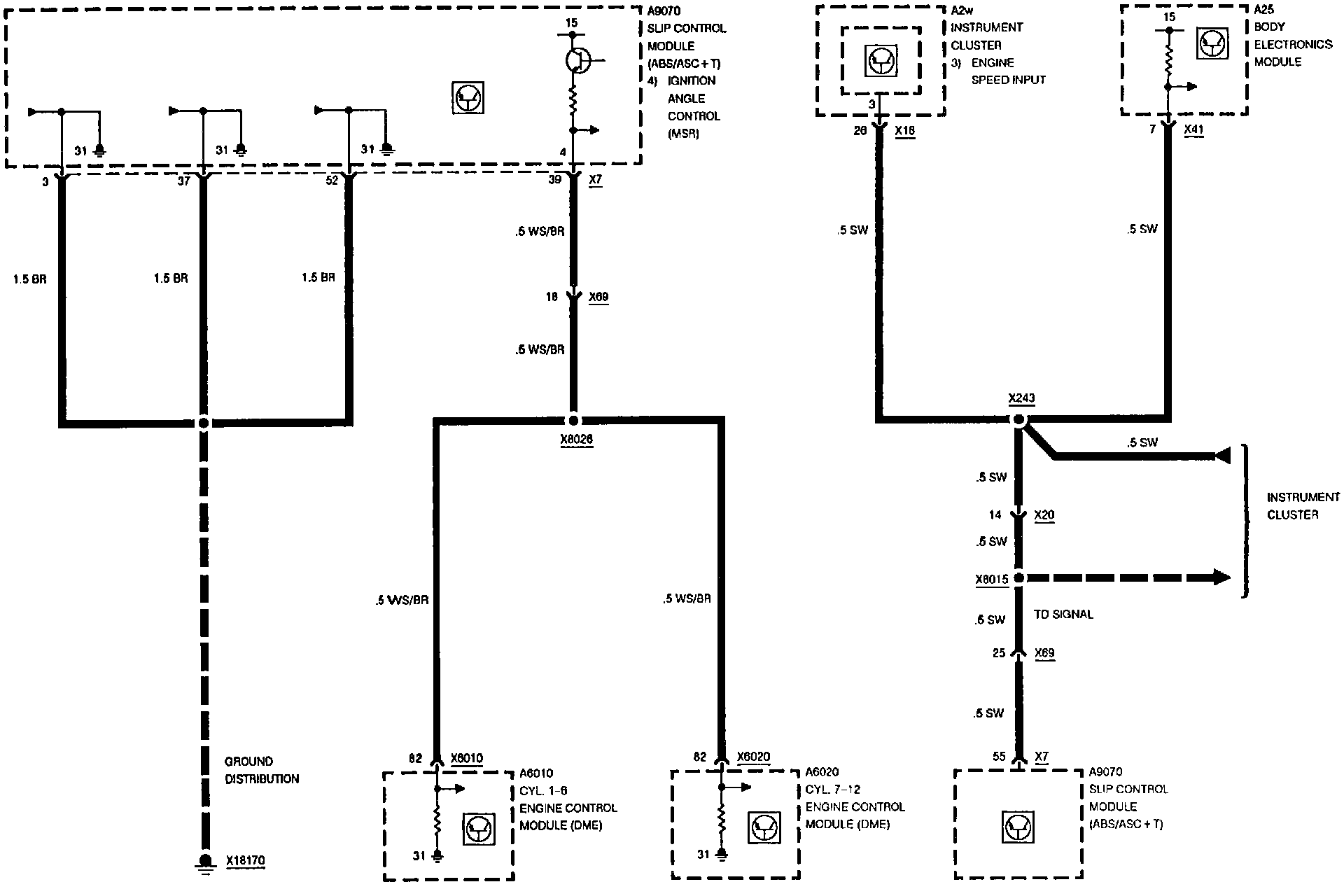 Slip Control (ABS/ASC+T): Engine Control (DME) Interface: