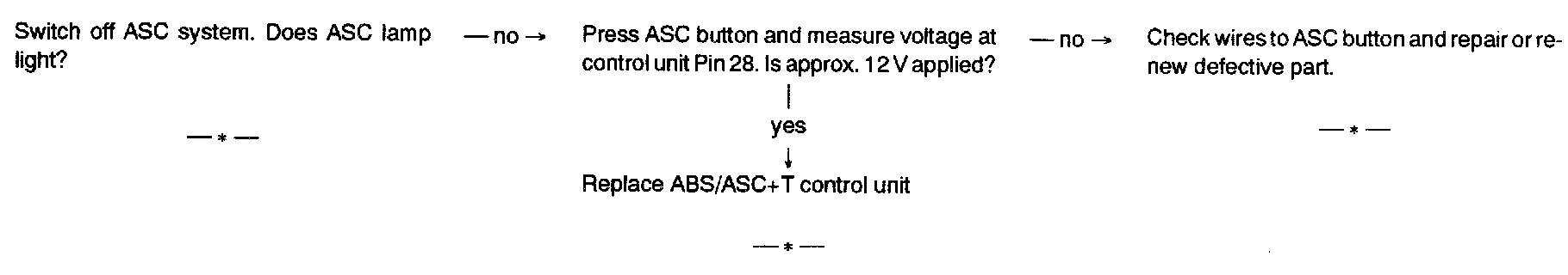 The system detect is not stored by the ABS/ASC+T control unit or the flash code cannot be read out.