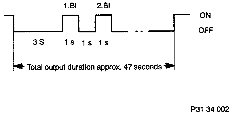 After activation of the defect code the ASC lamp goes out for 3 seconds and then begins outputting the flash pulses at a flash frequency in a pulse/pause ratio of 1 sec/1 sec.