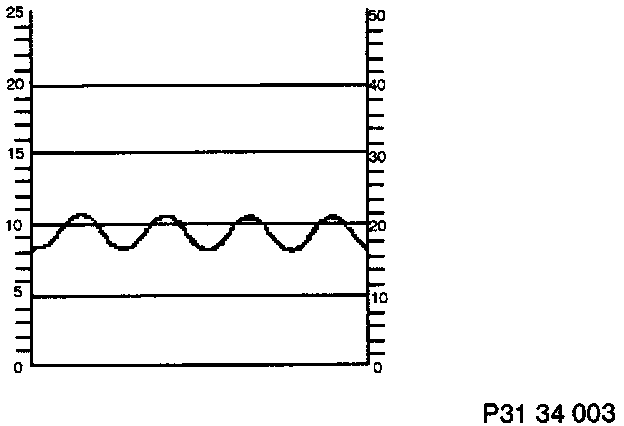 If no signal can be seen on the oscilloscope from one wheel, turn the opposite wheel. If a signal is displayed, this indicates that the wheel speed sensor wiring has been interchanged.