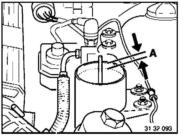 Vehicles without ride level control, oil level must now be about 10 mm (0.39 in) below upper edge of tank.