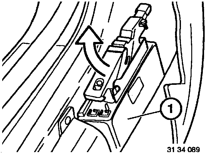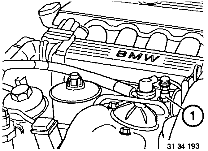- Fit special tool 34 3 110 to the bleeder screw (1) on the hydraulic plunger unit and insert end of hose in hydraulic oil tank.