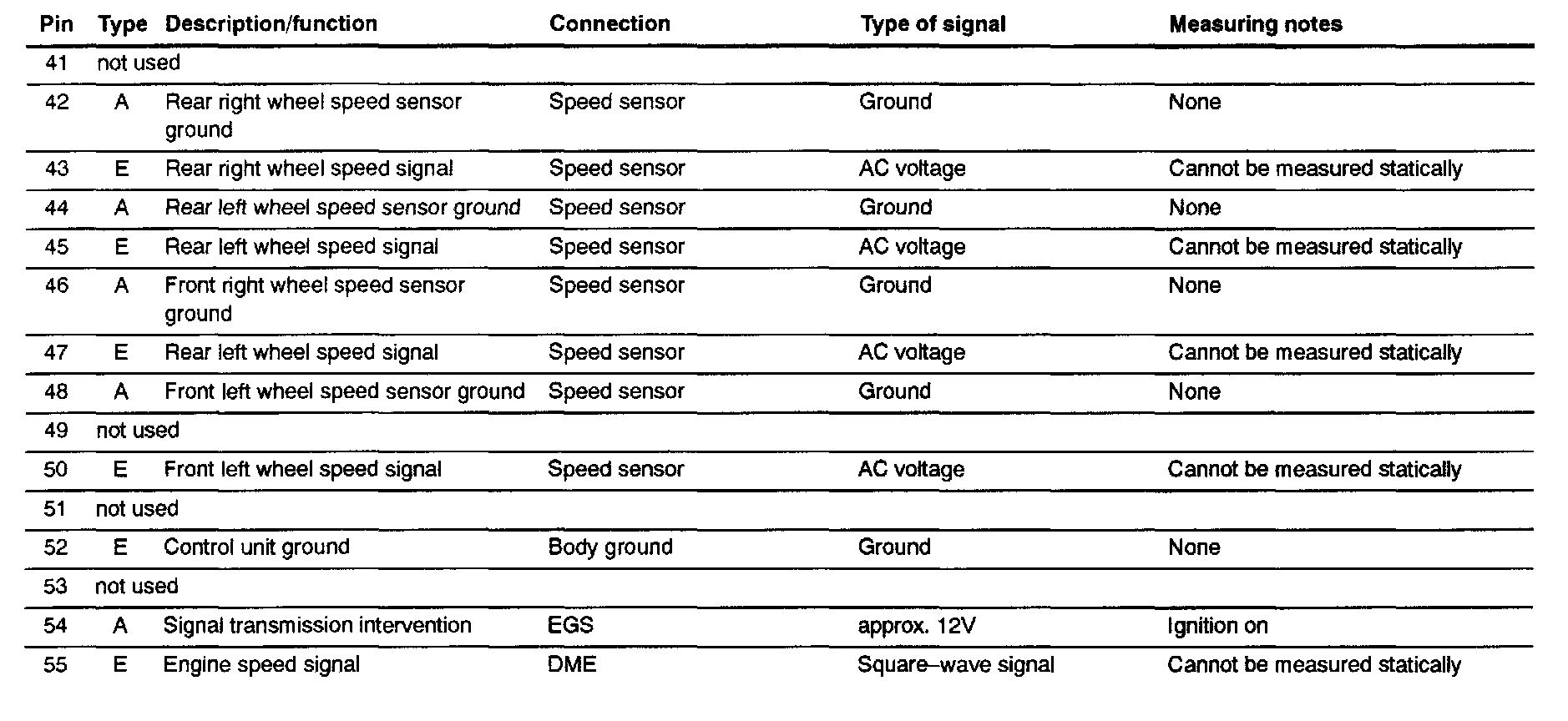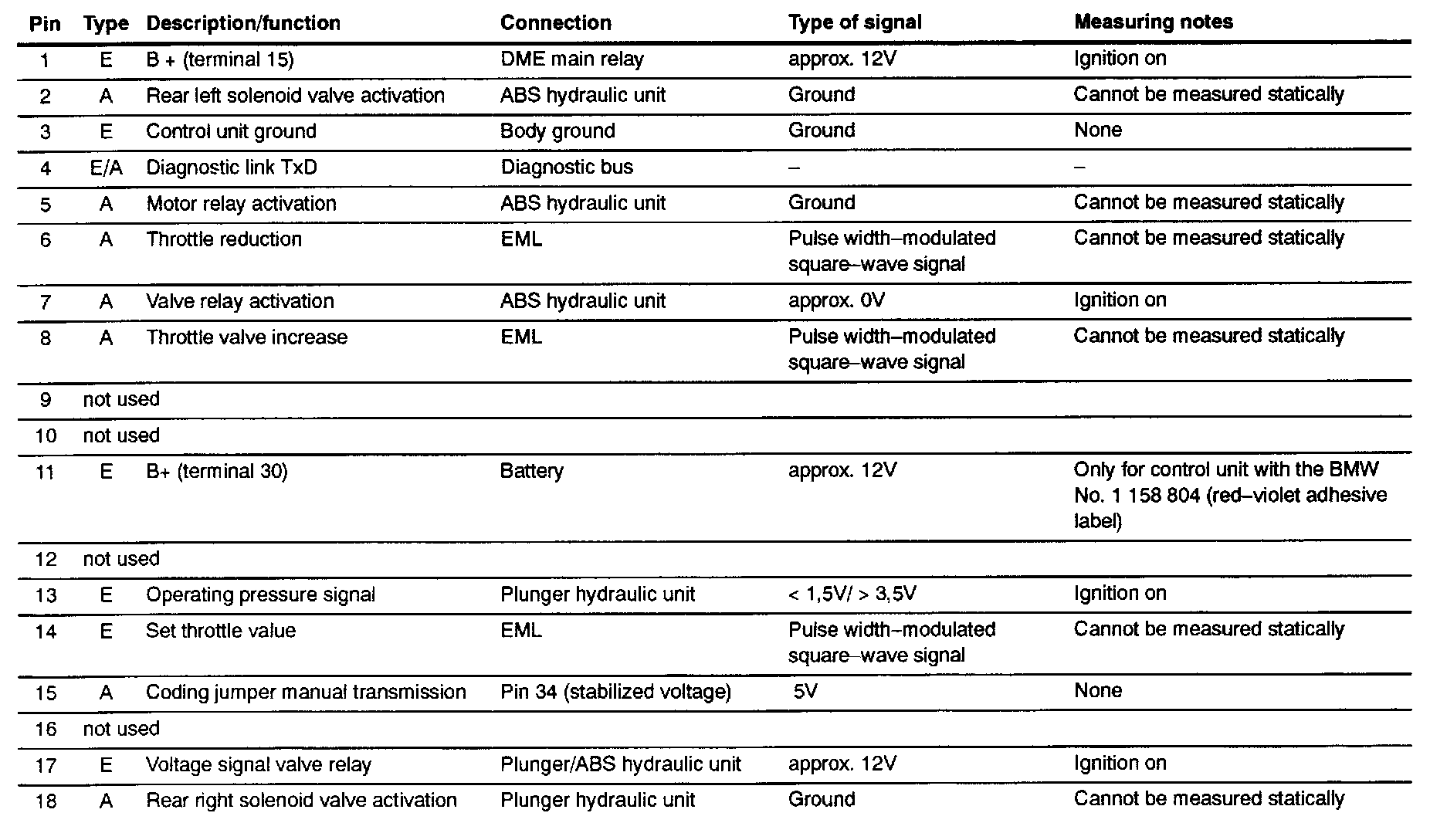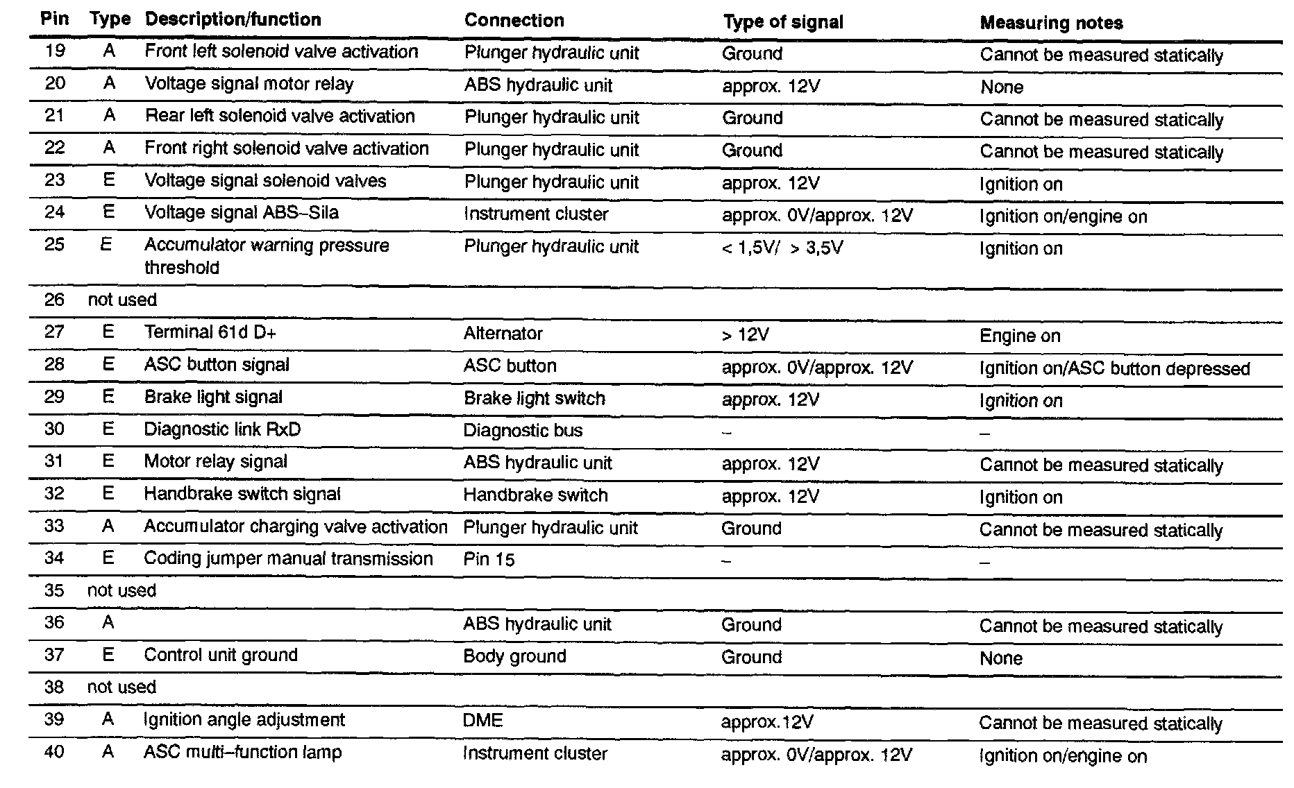 Pin Assignments at Conn.. X 11 (ABS/ASC+T Unit Connector)