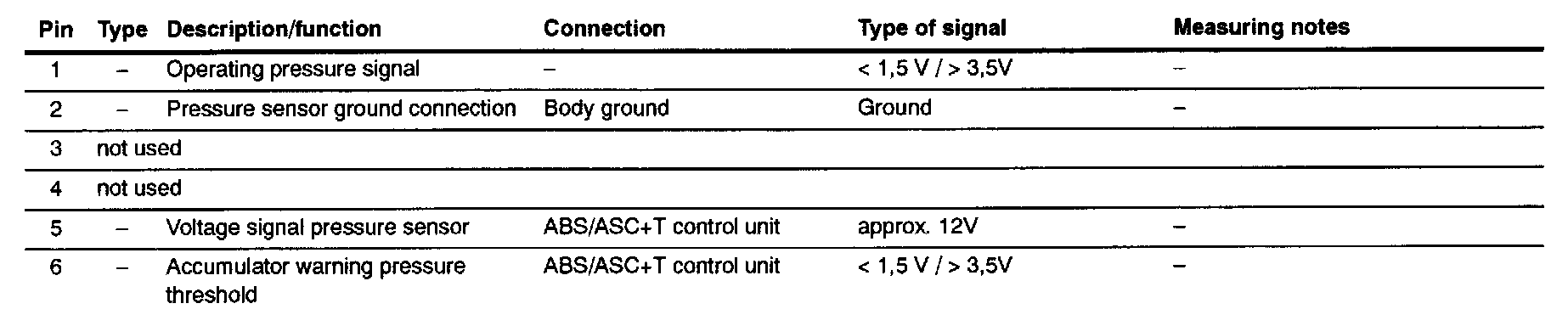 Pin Assignments at Conn.. X 18025 (Plug Conn.. Pressure Sensor)