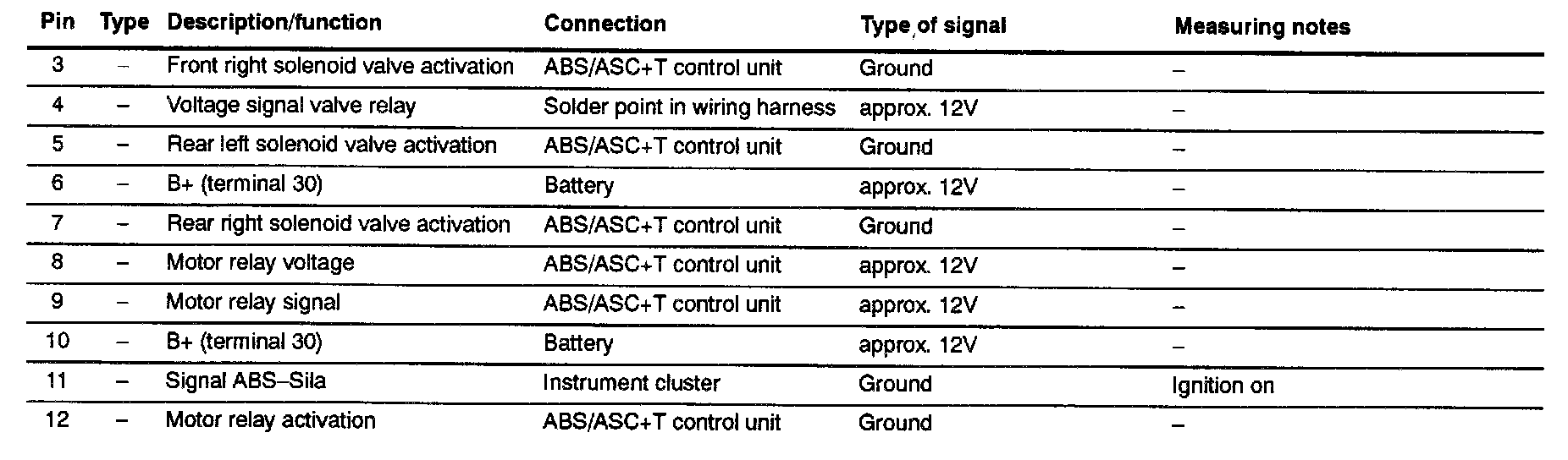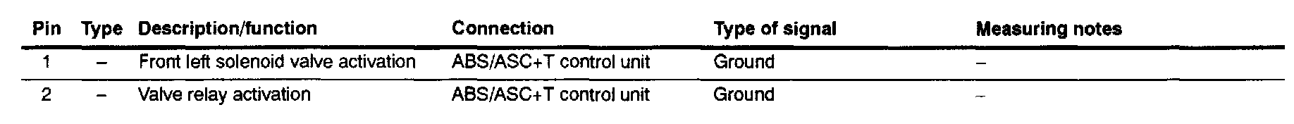 Pin Assignments at Conn.. X 31 (ABS Hydraulic Unit Connector)