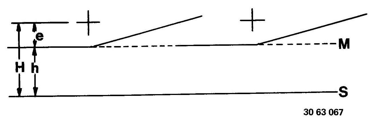 - Aimer set up on car's longitudinal axis and parallel to contact surface and marking line (M) set to distance (e) on the aimer.