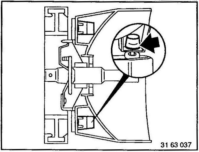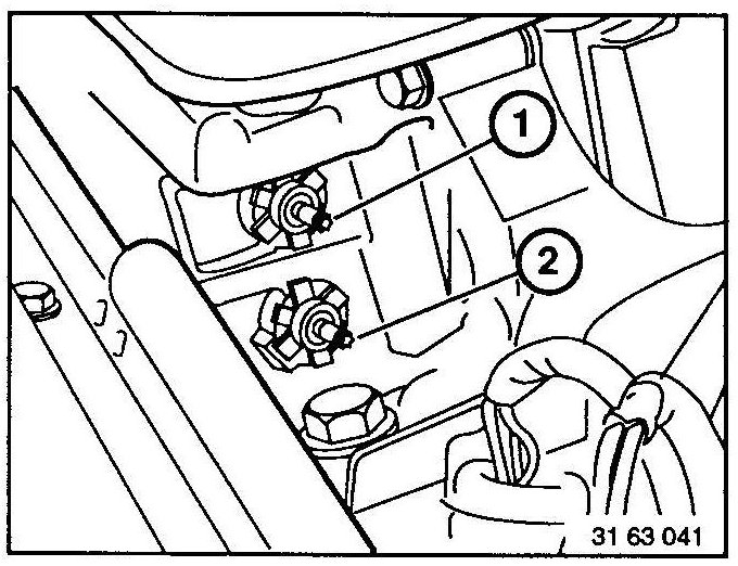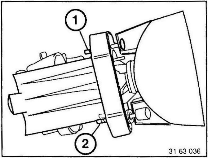 Turn mounting nuts of adjusting screws (1 and 2) and mounting screw (3) with Special Tool 63 0 020.