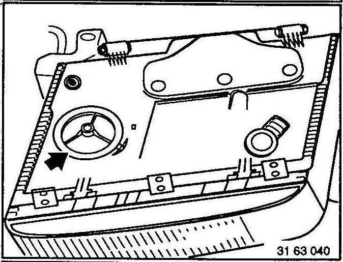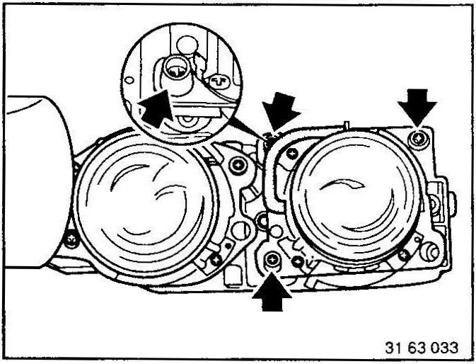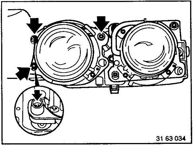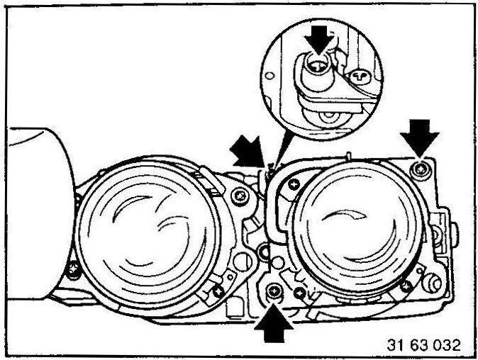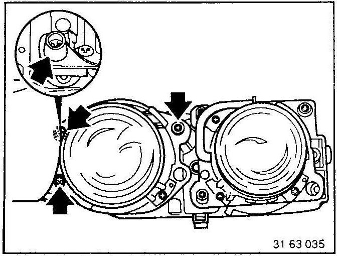 Remove left or right concealed headlight assembly - see 63 12 090. 63 12 090 Removing and Installing or Replacing Left or Right Concealed Headlight Assembly