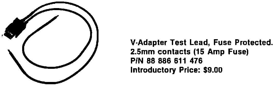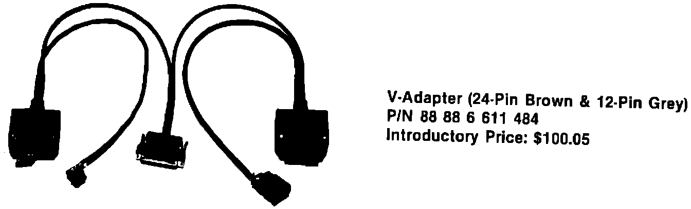 The adaptor cables are color coded to match connectors in the vehicle. They cannot be interchanged and are protected against improper polarity. In addition, the jumper leads found in the Kent Moore test kit P/N 88 88 6 900 322, in conjuction with the universal adaptor box and a Fluke multimeter, can be used for troubleshooting.