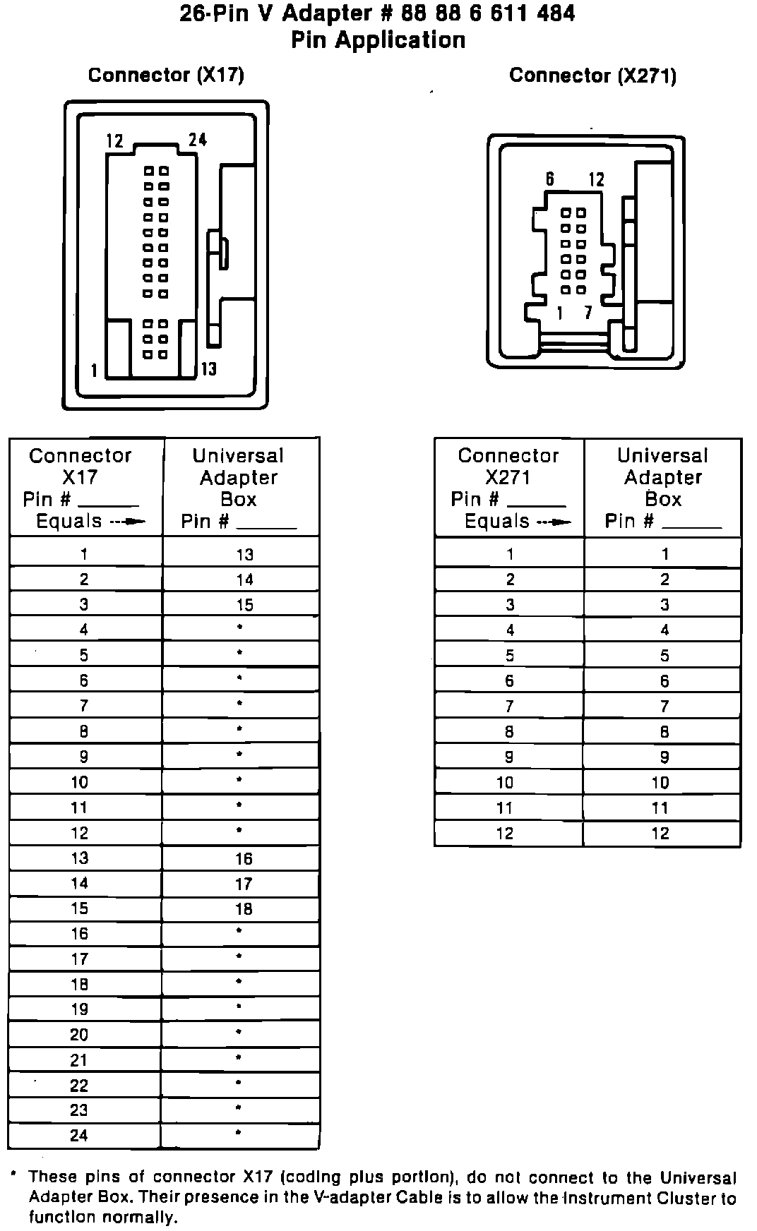 (in conjunction with P/N 88 88 6 611 482/483/459). See chart for Pin Application.