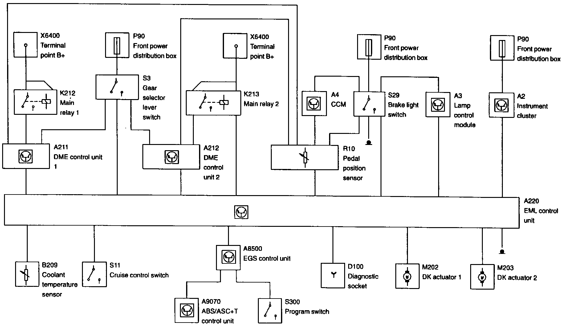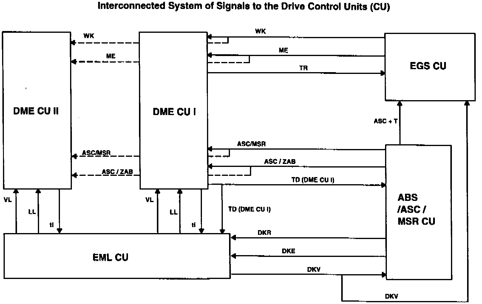 - Interfaces for data exchange with other control units (e.g. Automatic Stability Control (ASC), Digital Motor Electronic (DME) and Electronic Transmission Control (EGS)