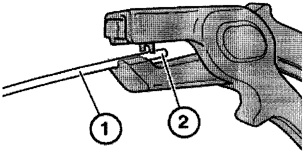 Guide wire (1) until behind knife. Wire length (2) behind knife blade represents the length from which insulation will be stripped.