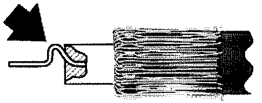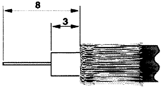 Cut off faulty antenna elbow plug directly after cable grip.Carefully and with precision, strip insulation from antenna cable as illustrated (lengths given in mm). Brush shield (copper braid) towards rear. No more copper wire should be protruding in the direction of the inner conductor on the inner conductor insulation (danger of shorting).