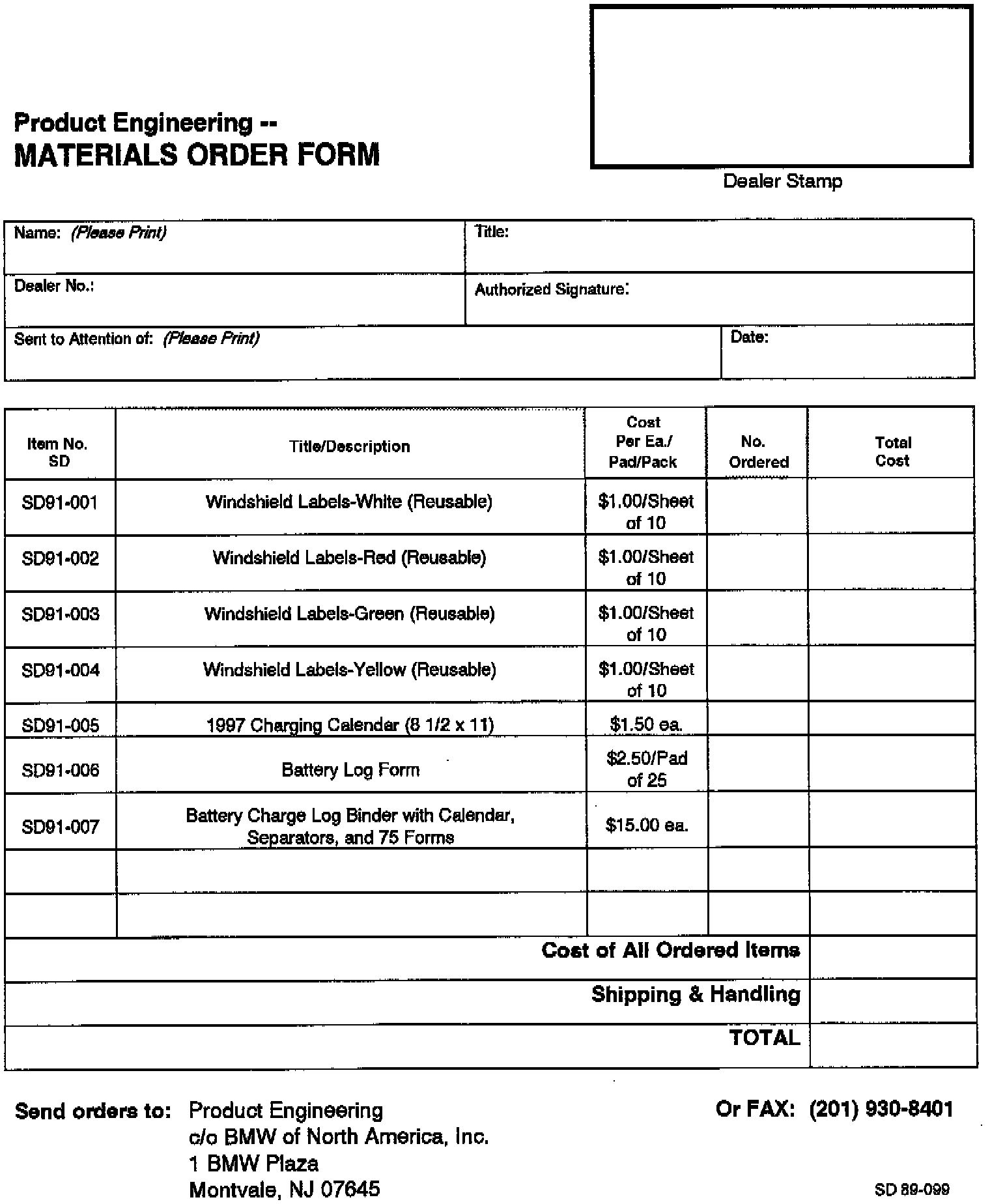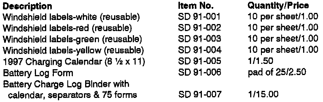 Requests for additional binders, forms, calendars or windshield labels should be addressed to: