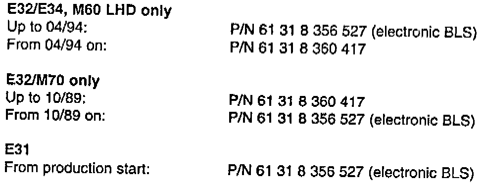 3 Series (E30) (E36); 5 Series (E34); 7 Series (E32); 8 Series (E31)